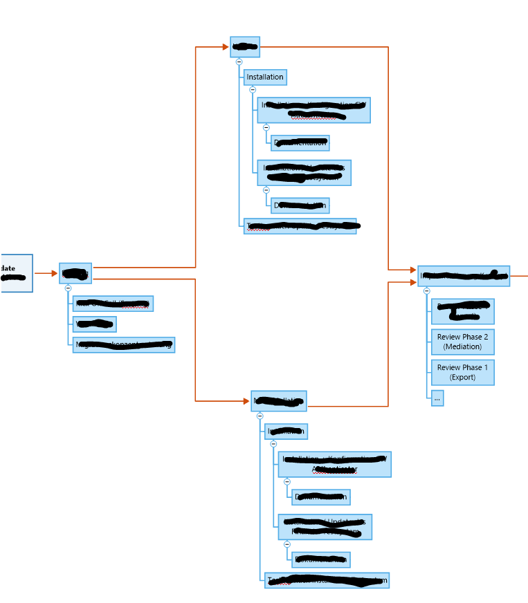 I often use the diagrams with several branches (decisions) that then converge again. And I have not yet found out whether this works with the timeline...