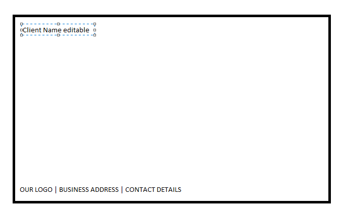 Is there a way that I can create a template that I can always use, if I copy it. Essentially I want to create a frame with our logo and editable fields to add clients names... then have it printed out in a A3 paper with the correct dimensions, I have attached an example.