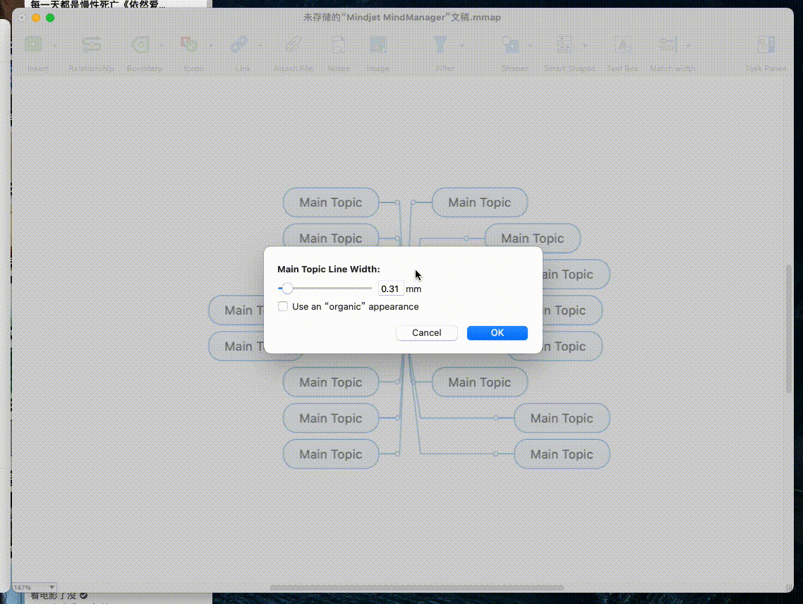 How to set the bar thickness of the map,l use the format < topic lines, no choice (use an "organic" appearance, Adjust the width, but the line and theme border are adjusted at the same time?