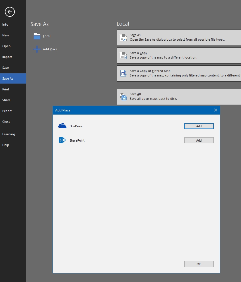 When I try to save a file in Google Drive, the only places offered are onedrive & Sharepoint (as you can see in the shot). How can I add Google Drive as save place?
