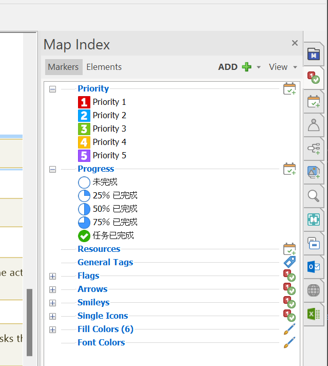 Upgraded to MindManager 23. Now the Progress icon text is displayed in Chinese.