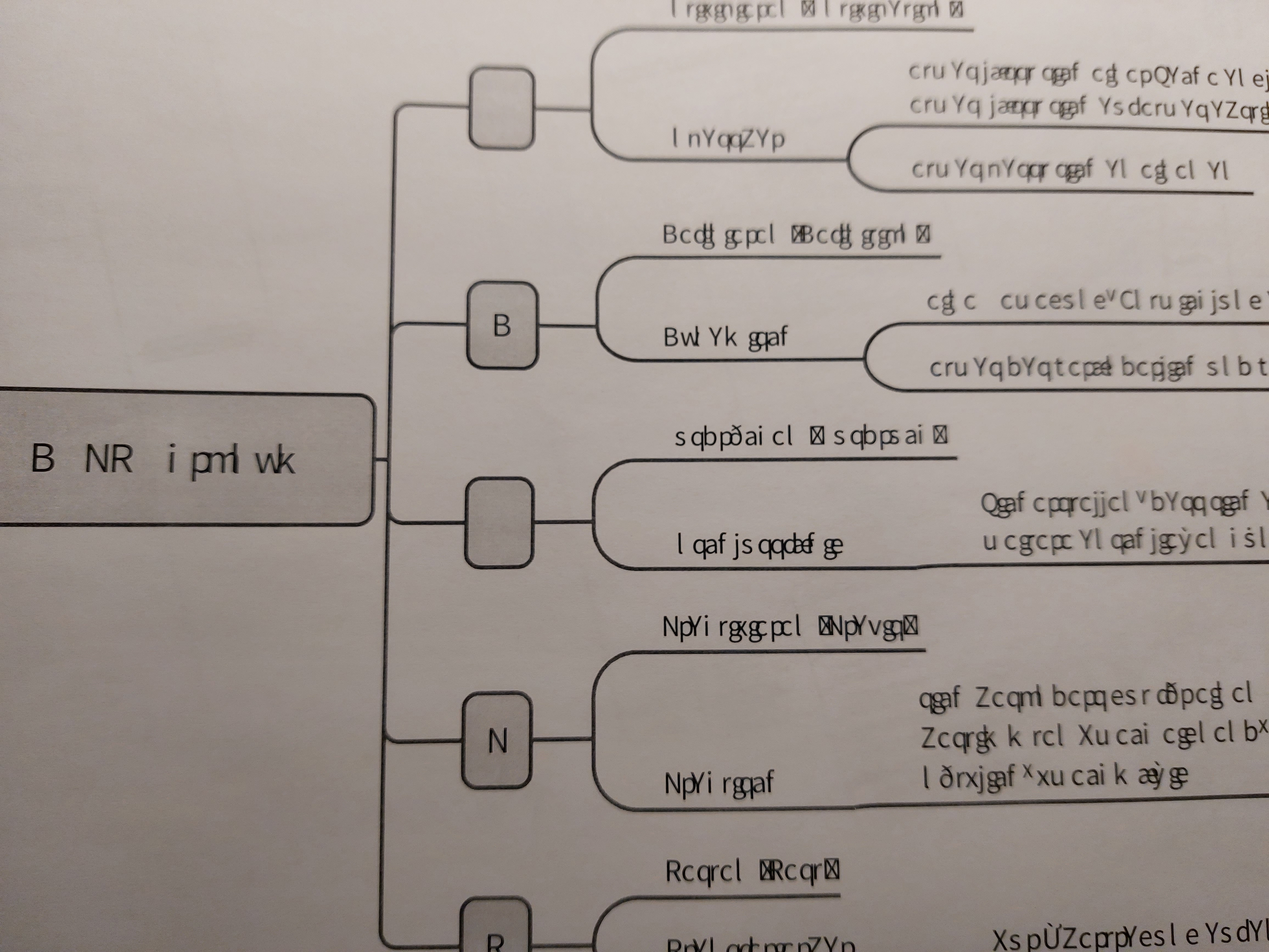 The used font is missing on you computer and your printer driver cannot translate this font. Update your printer driver.