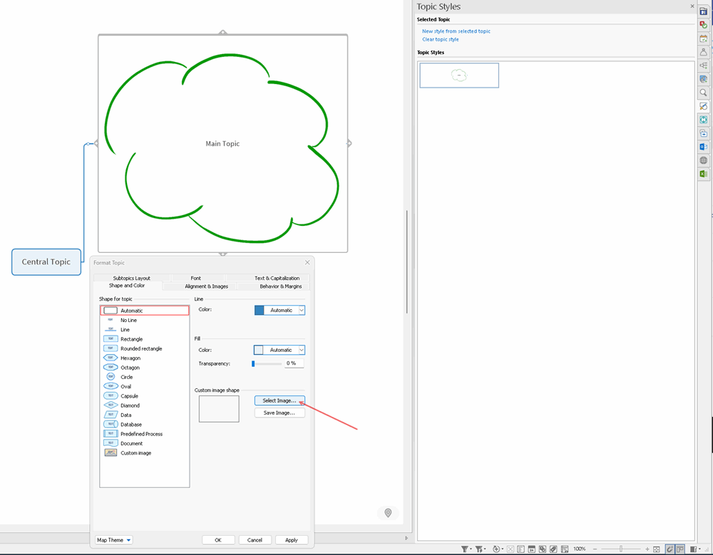 MindManager offers a limited number of shapes that users can use to restyle topics.