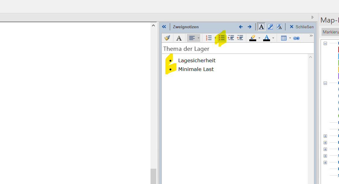 I would appreciate the functionality that MindManager automatically sets a bullet point when I type a hyphen within Notes instead of having to select the bullet point myself first.