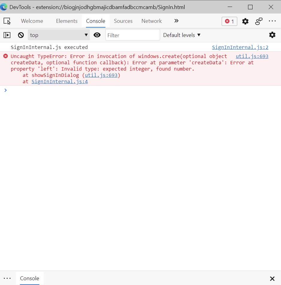 No joy in Chrome, either. I've attached two files. One shows the screen area after clicking on the extension. The other shows what's displayed after right-clicking the extension button and selecting 'Inspect Pop-up Window'.
