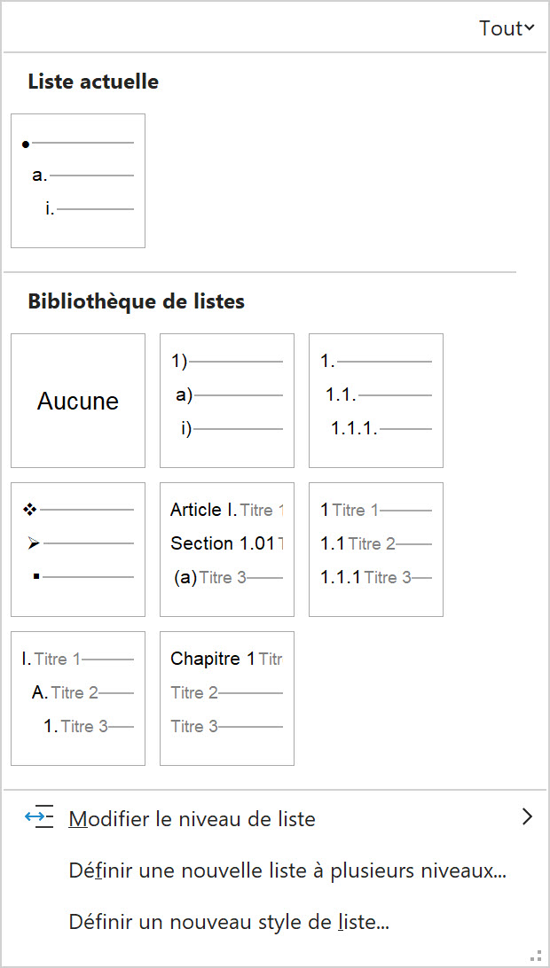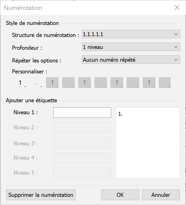 Exemple 2 : 1. 1.1 1.1.1 1.1.1.1 etc. (au choix)