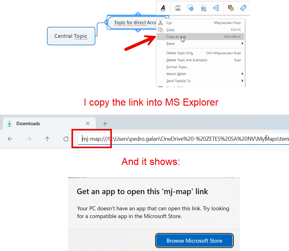 In the past, I am sure I could paste the link into Microsft Explorer and the laptop would open Mindmanager and would take me to the topic in the map directly.