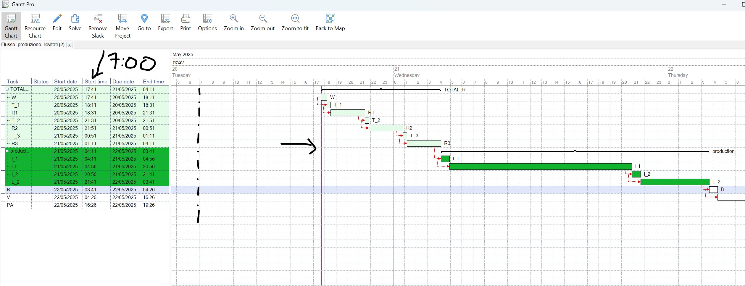 in this example the inizale activity, to which then all the others in cascade are linked, starts at 7:00 am.