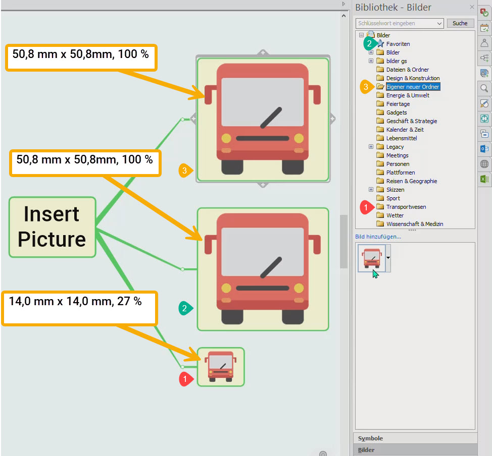 Thank you for the tips that I can implement and create and format all maps with images! A significant simplification would be if the image transfer size to the branches could be set in the folder. If you move an image to favorites or another folder, the image size increases to 100% (see image attachments).