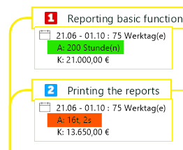 ich habe in Unterzweigen die Aufgabeninfos für Dauer und Aufwand unabhängig voneinander vergeben. Nun wundere ich mich, dass in der Zweigdarstellung manchmal die Stunden (wie in Aufgabeninfo eingegeben) in Stunden angezeigt werden, manchmal aber automatisch in Tagen (siehe Anhang mit grüner und orangener Markierung). Kann dieses Format irgendwo eingestellt werden?