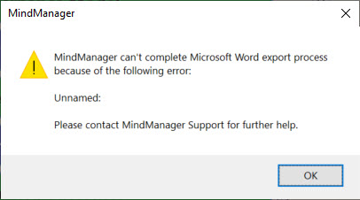 Using MindManager version 2020 - I can export to HTML 5 with no problems but when I try to export to MS Word, I get get the error I've attached "unnamed"
