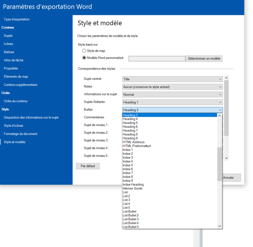 A. Existe-t'il un template word pour mindmanager avec tous les styles modifiables?