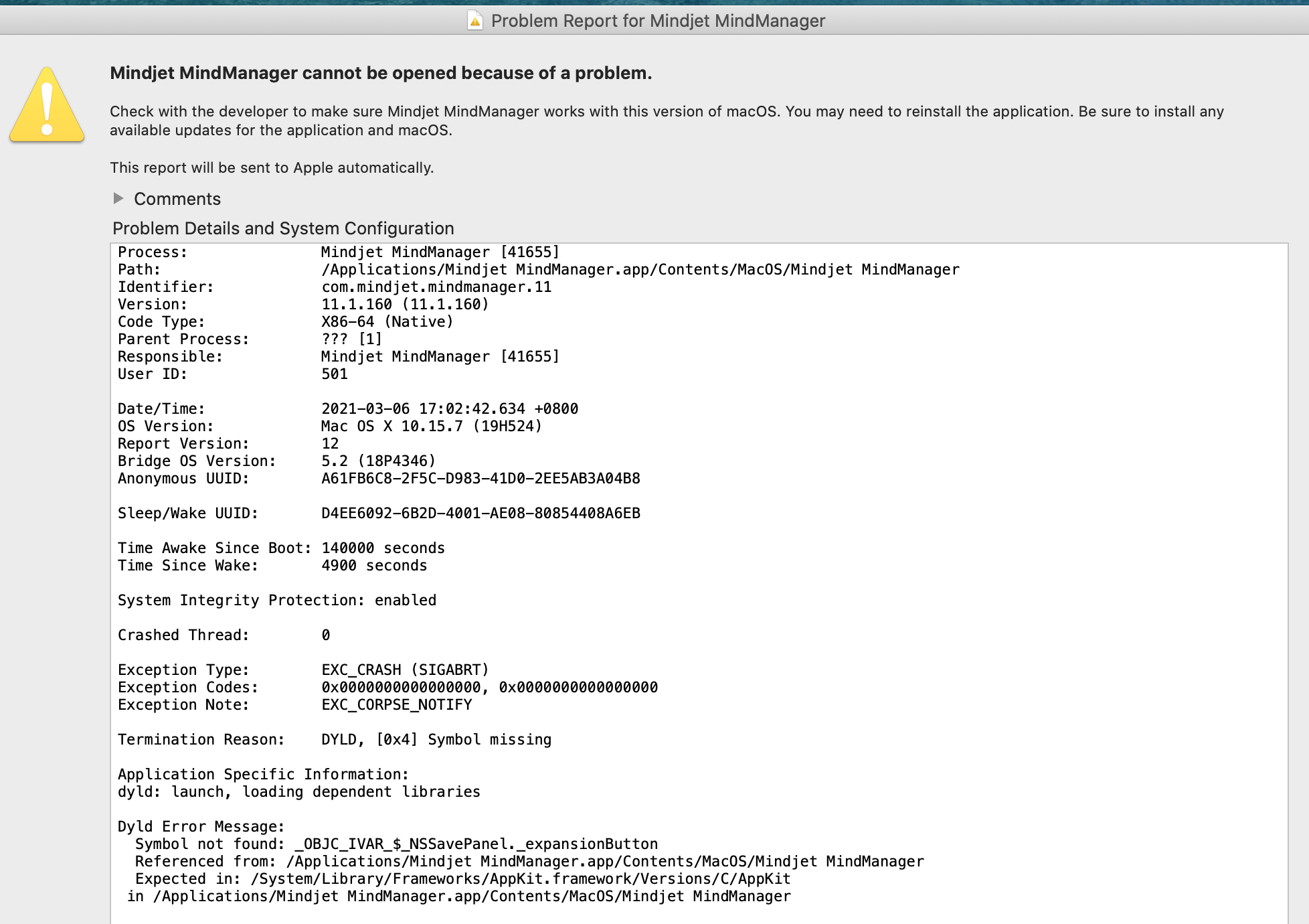 When I try to open Mindmanager or a mindmap file, I get the attached error message.